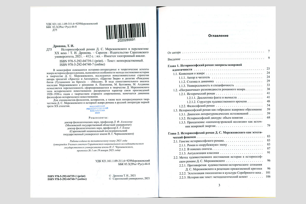 Дронова, Татьяна Ивановна. Историософский роман Д. С. Мережковского в перспективе XX века. Саратов, 2021.
