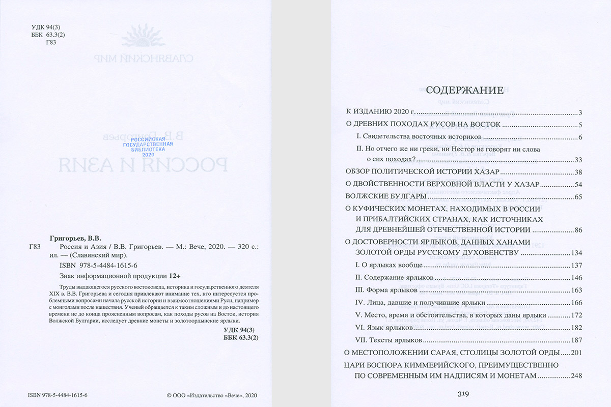 Григорьев, Василий Васильевич. Россия и Азия. Москва, 2020.