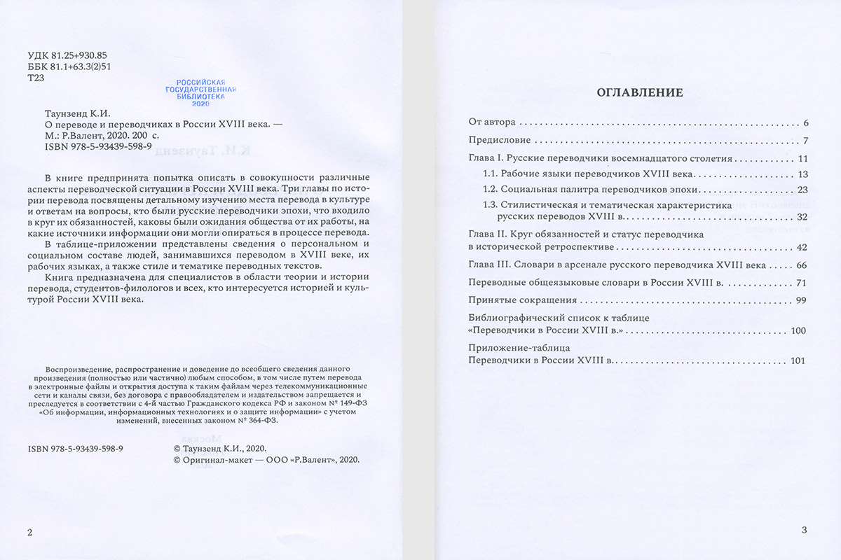 Таунзенд, Ксения Игоревна. О переводе и переводчиках в России XVIII века. Москва, 2020.