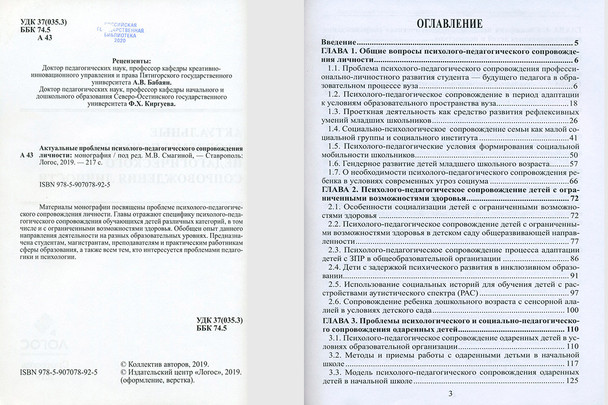 Актуальные проблемы психолого-педагогического сопровождения личности. Ставрополь, 2019.
