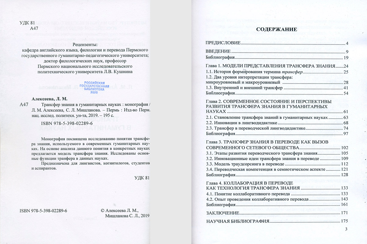 Алексеева, Л. М. Трансфер знания в гуманитарных науках. Пермь, 2019.