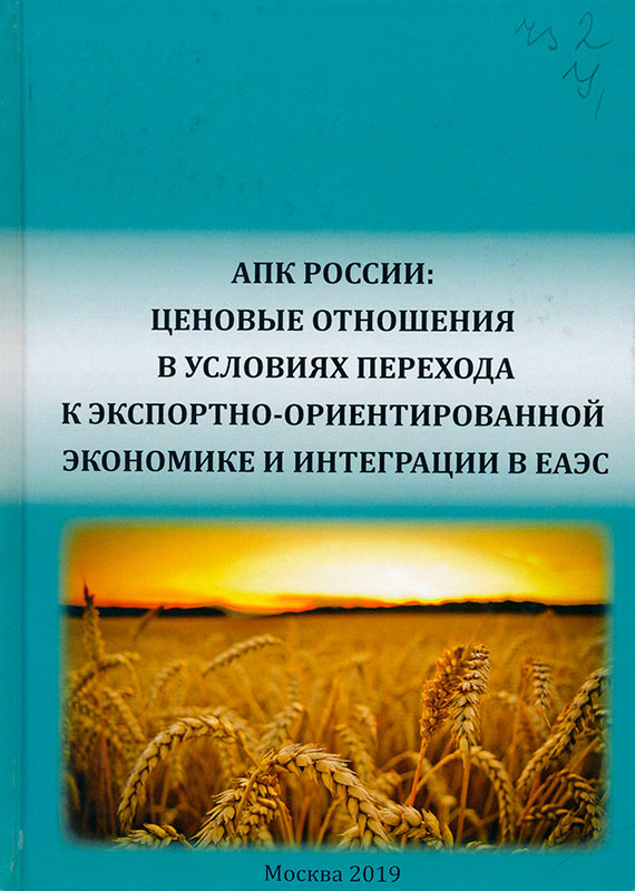 АПК России: ценовые отношения в условиях перехода к экспортно-ориентированной экономике и интеграции в ЕАЭС: монография. — Москва: Научный консультант, 2019
