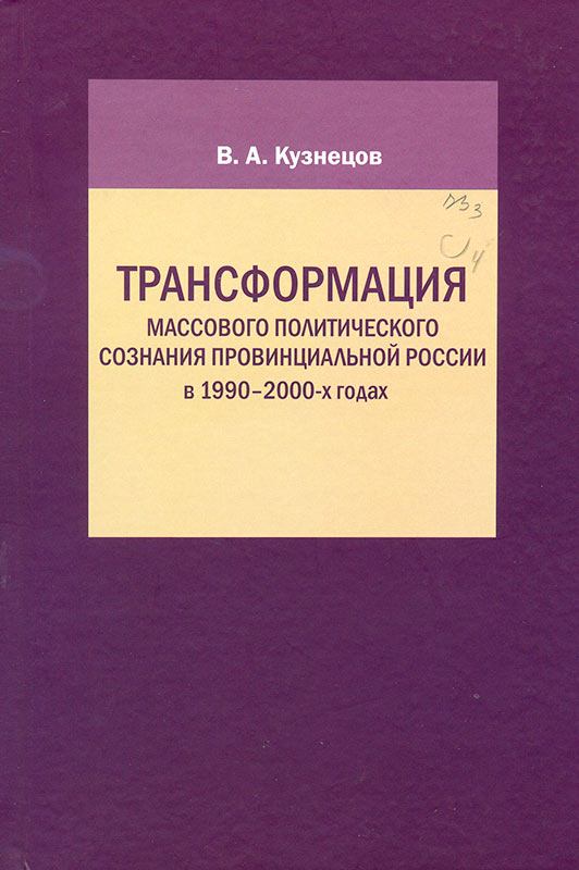 Виктор Кузнецов. Трансформация массового политического сознания провинциальной России в 1990—2000 -х годах. — Самара: Изд-во Самарского ун-та , 2019