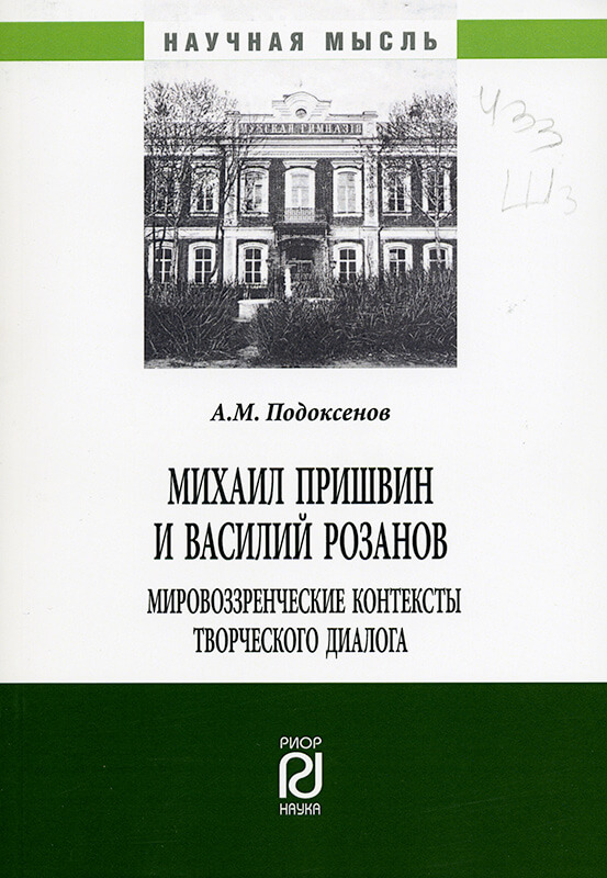 Александр Подоксёнов. Михаил Пришвин и Василий Розанов: мировоззренческие контексты творческого диалога: монография. — Москва: РИОР: Наука, cop. 2019