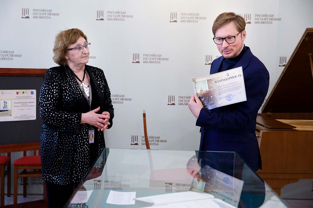 Выставка в Российской государственной библиотеке стала первым мероприятием Фестиваля искусств имени А. Н. Скрябина «Вдохновлённый Космосом». В приветственном слове председатель оргкомитета фестиваля директор Библиотеки-читальни имени И. С. Тургенева Ромуальд Ромуальдович Крылов-Иодко отметил насыщенность программы, состоящей из 46 мероприятий: в течение недели в библиотеках, музыкальных школах, колледжах, музеях, культурных центрах пройдут концерты, выставки, лекции, тематические вечера, посвящённые композитору и его эпохе.