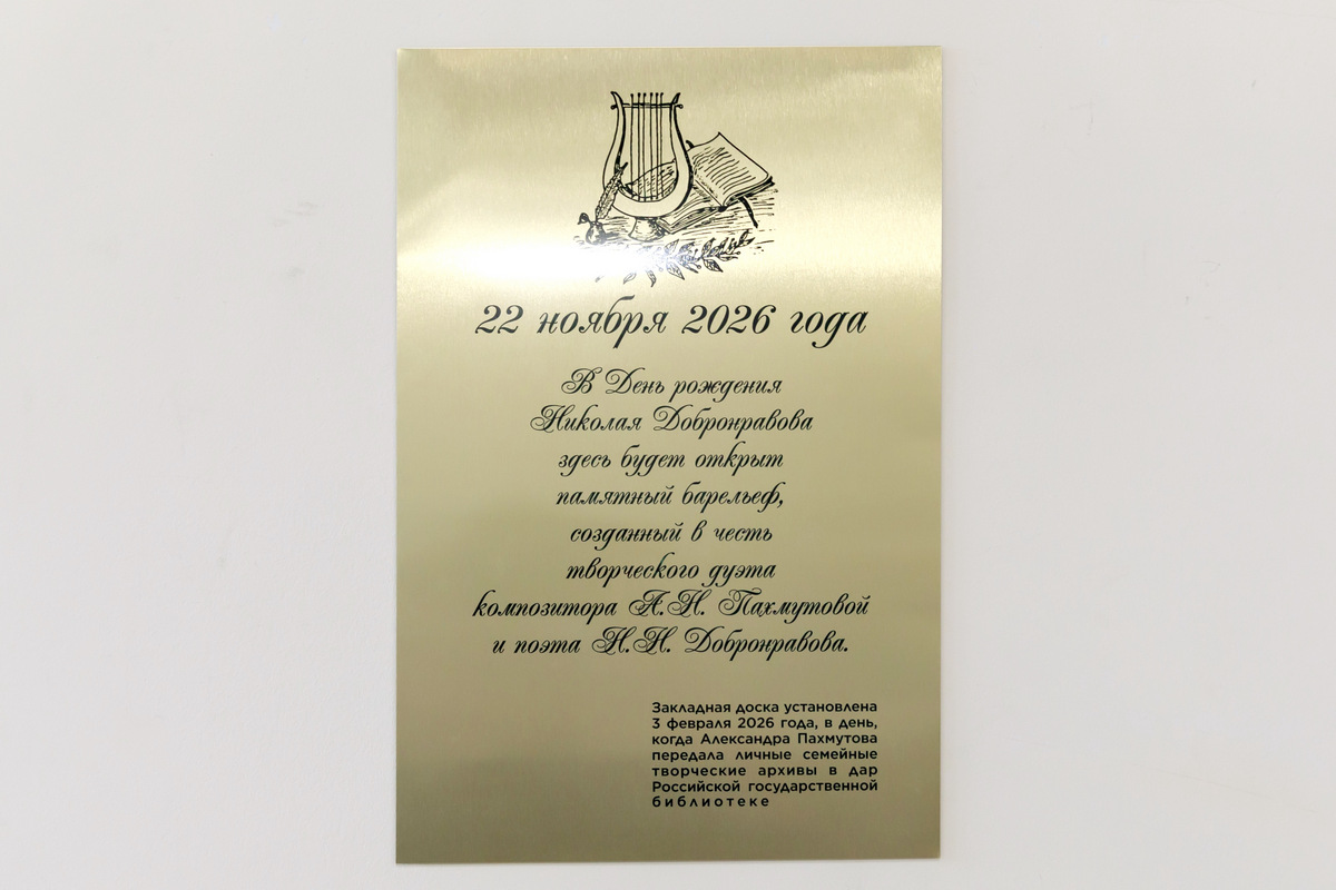 В рамках мероприятия была открыта закладная доска, символизирующая начало работ над будущим памятником. Барельеф, посвящённый творческому союзу Пахмутовой и Добронравова, планируется установить 22 ноября 2026 года, в день