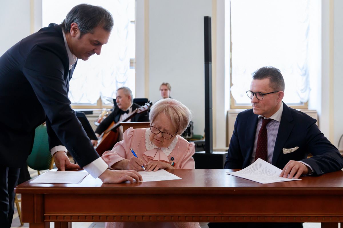 Народная артистка СССР, Герой Социалистического Труда, Герой Труда Российской Федерации Александра Пахмутова и генеральный директор Российской государственной библиотеки Вадим Дуда