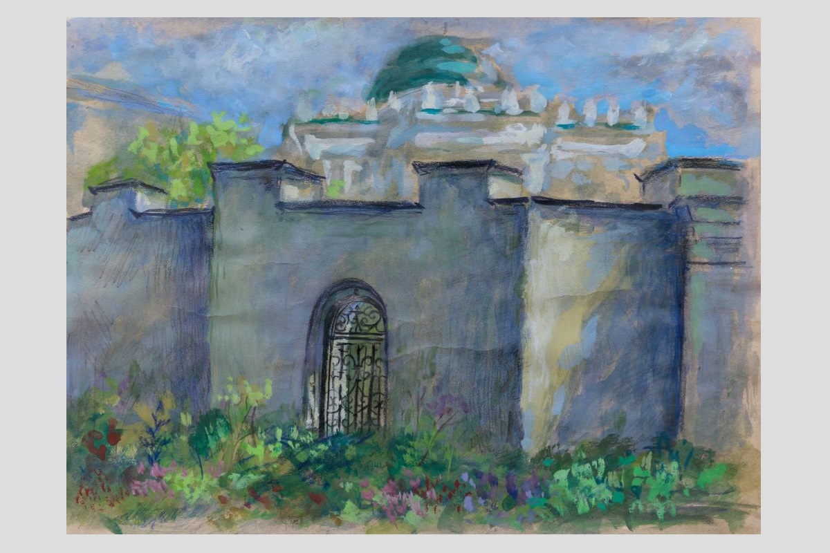 Макар Фабрика. Портал: арка с видом на Пашков Дом (гуашь, масляная пастель, карандаши)