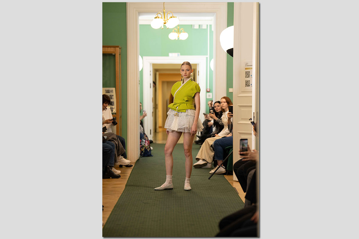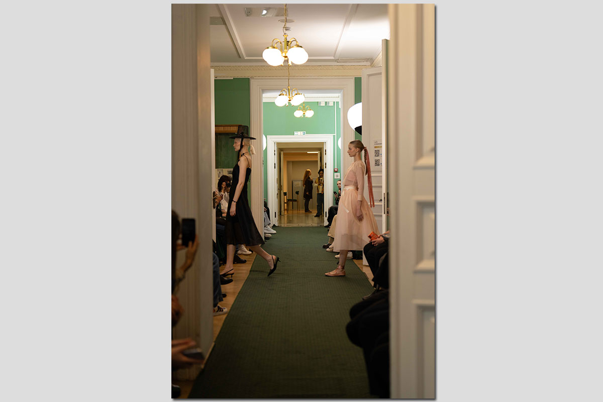 Модный показ проходил сразу в трёх зала ЦВЛ, чтобы все многочисленные присутствующие смогли наблюдать за волшебством происходящего. Словно сказочные феи, из зала в зал перемещались девушки в удивительных нарядах. Модельеры Ким Мигён и Со Мичжин вдохновляются традиционным нарядом «ханбок» и переосмысляют его в современных изделиях. Зрители увидели образы, в которых умело совмещаются как классическая, так и современная эстетика.