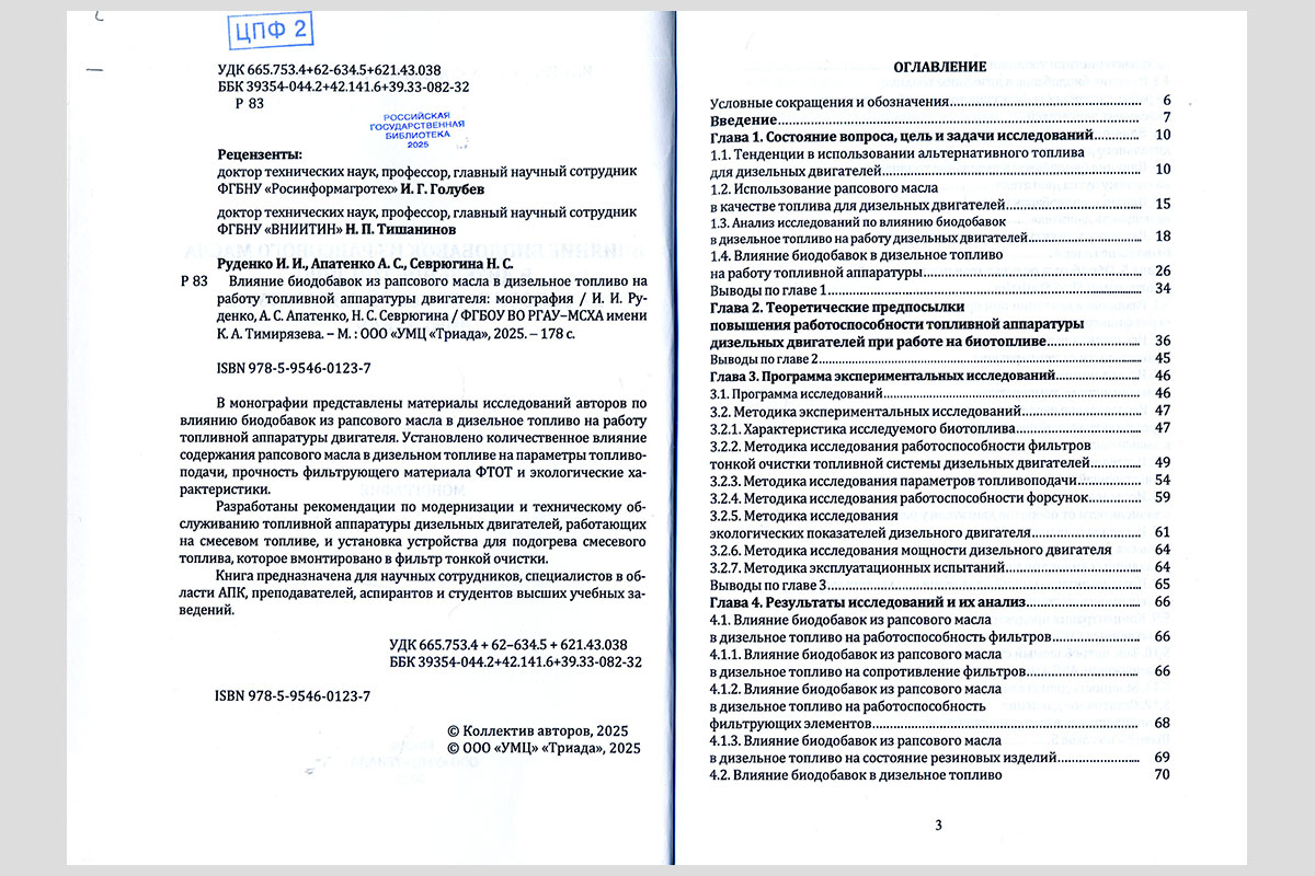 Руденко, Иван Иванович. Влияние биодобавок из рапсового масла в дизельное топливо на работу топливной аппаратуры двигателя. Москва, 2025