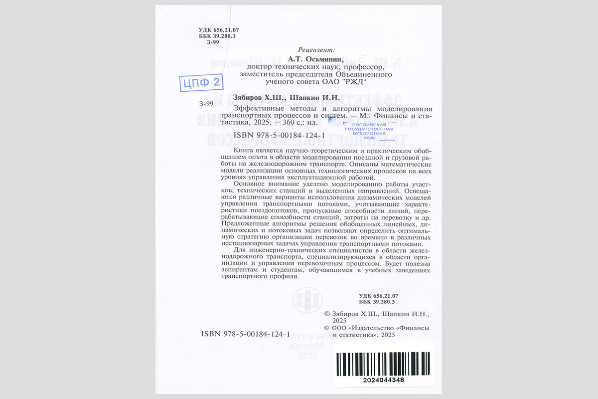Зябиров, Хасян Шарифжанович. Эффективные методы и алгоритмы моделирования транспортных процессов и систем. Москва, 2025