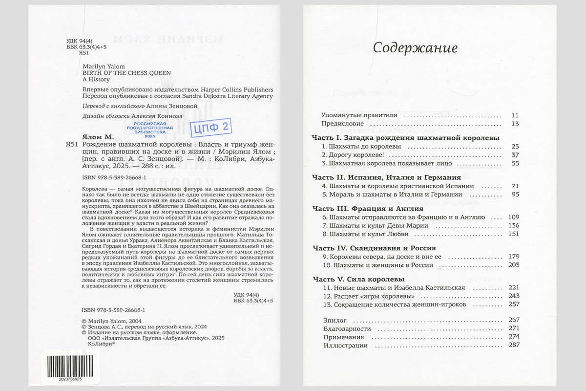 Ялом, Мэрилин. Рождение шахматной королевы: власть и триумф женщин, правивших на доске и в жизни. Москва, 2025