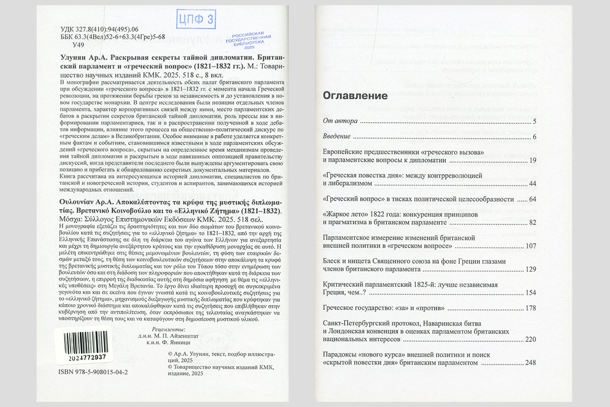 Улунян, Арутюн Акопович. Раскрывая секреты тайной дипломатии. Британский парламент и «греческий вопрос»