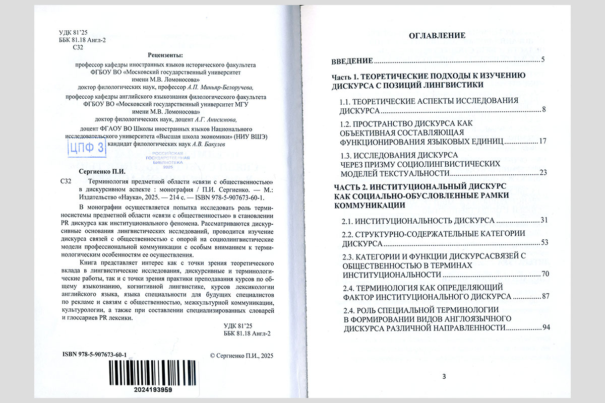 Сергиенко, Полина Игоревна. Терминология предметной области «связи с общественностью» в дискурсивном аспекте. Москва, 2025