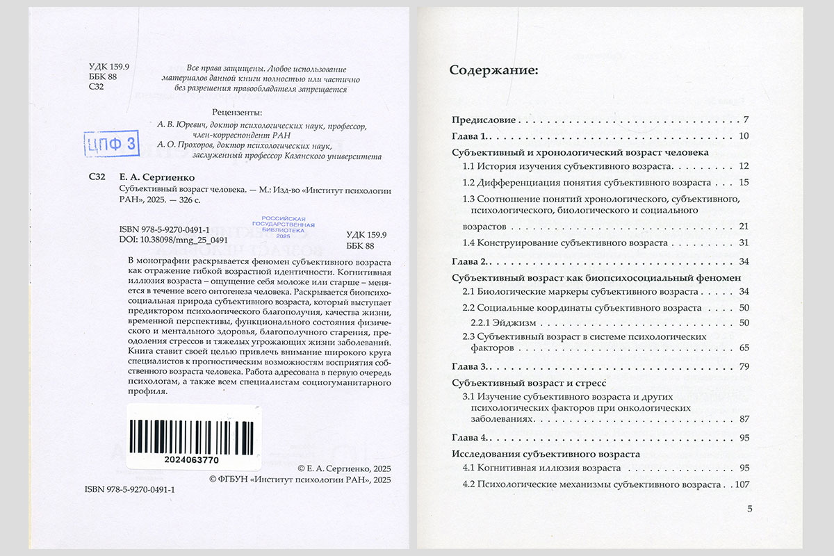 Сергиенко, Елена Алексеевна. Субъективный возраст человека. Москва, 2025