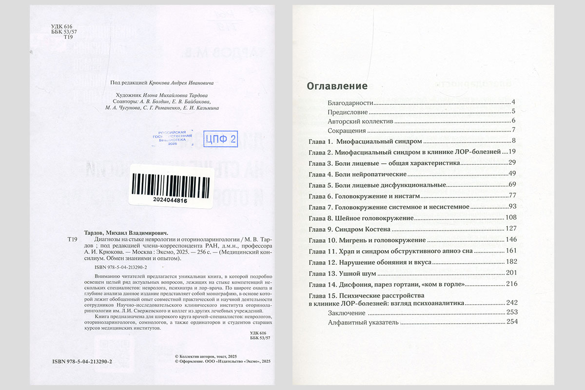 Тардов, Михаил Владимирович. Диагнозы на стыке неврологии и оториноларингологии. Москва, 2025