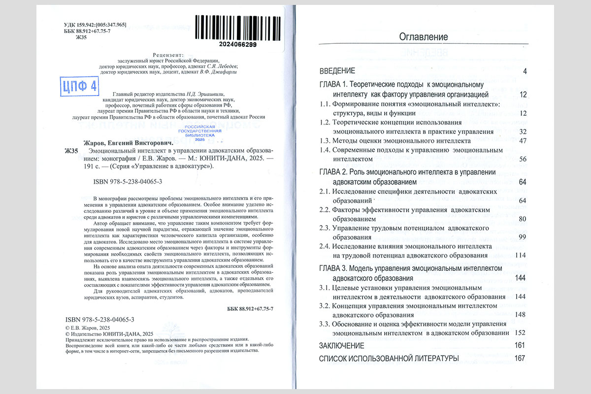 Жаров, Евгений Викторович. Эмоциональный интеллект в управлении адвокатским образованием. Москва, 2025