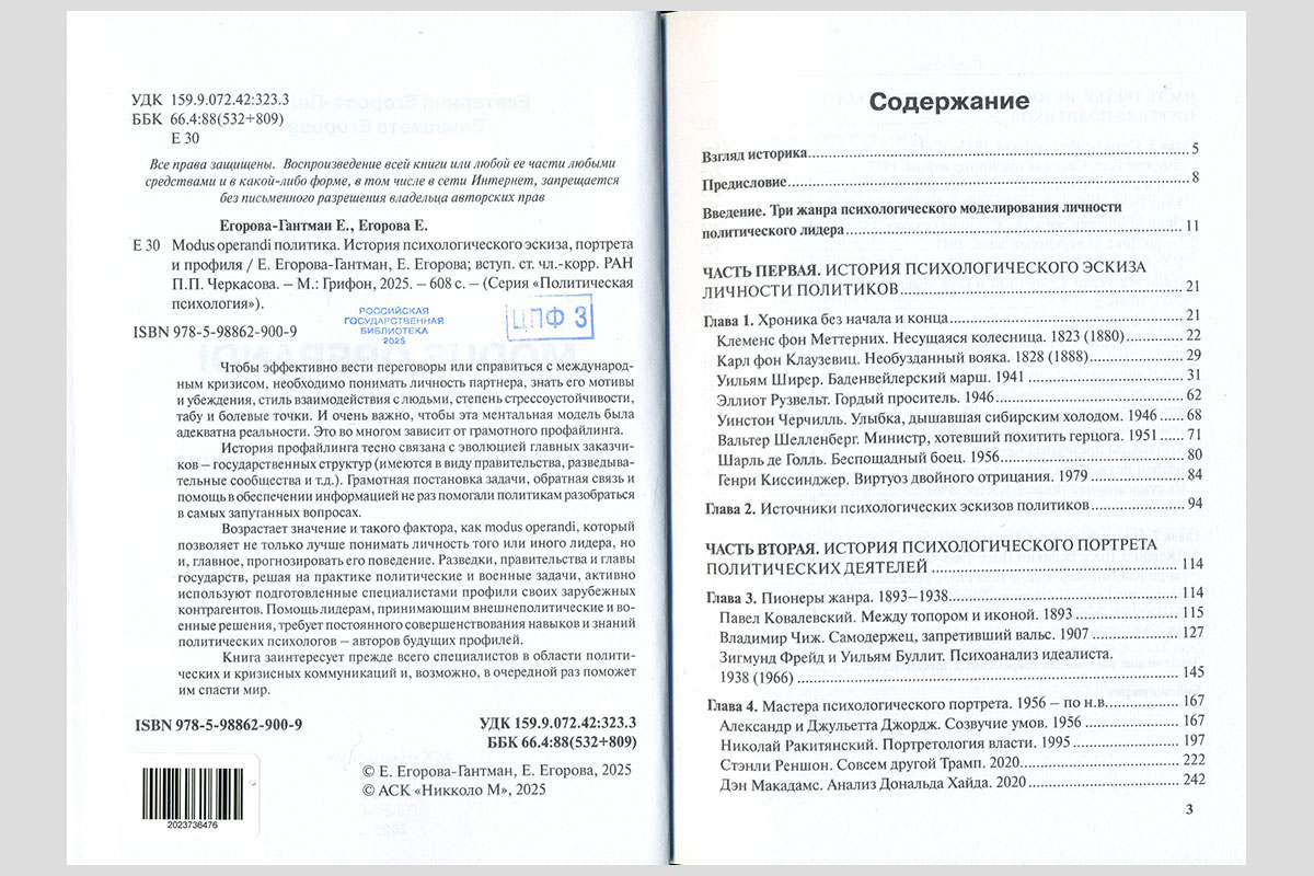 Егорова, Екатерина Владимировна. Modus operandi политика: история психологического эскиза, портрета и профиля. Москва, 2025