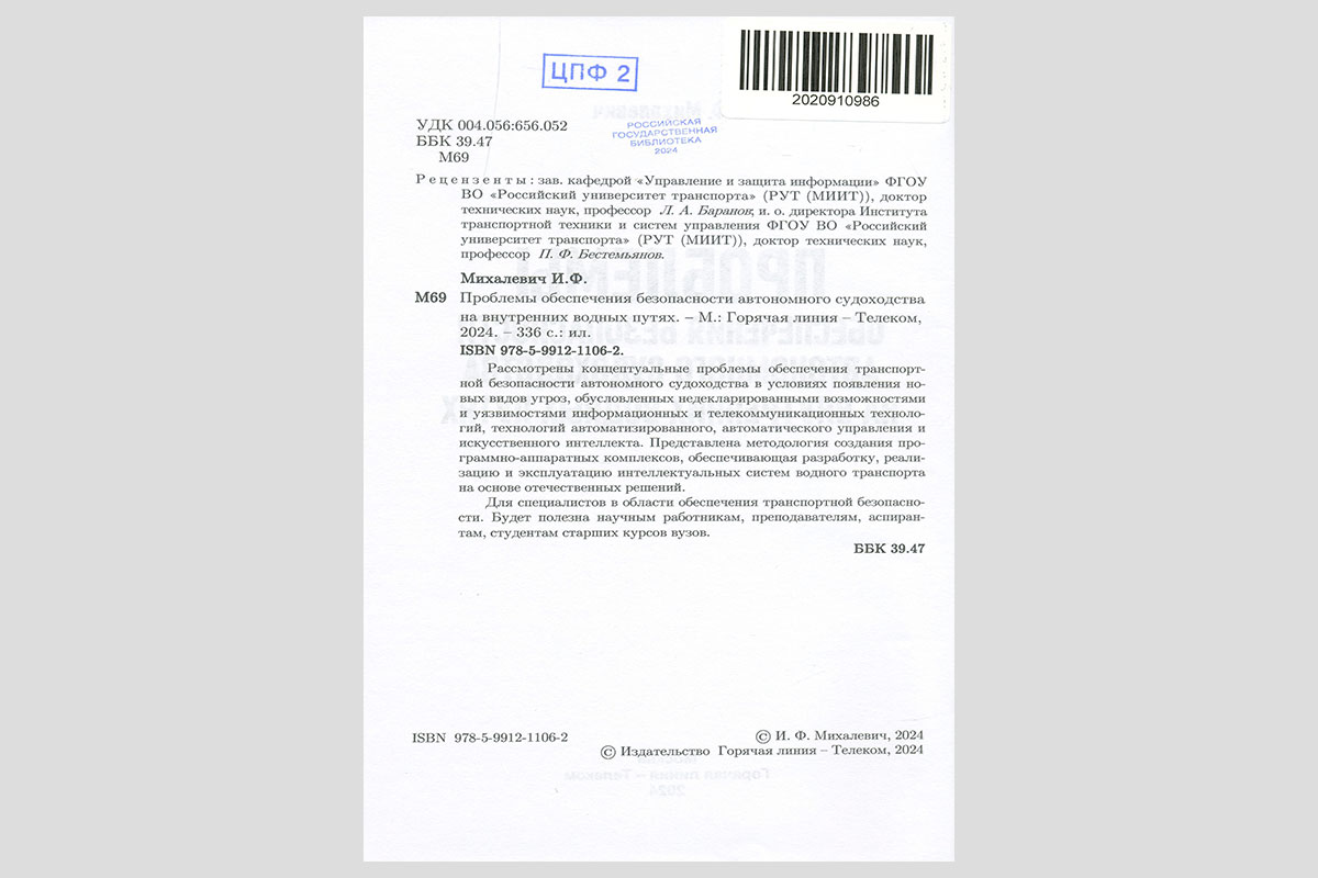 Михалевич, Игорь Феодосьевич. Проблемы обеспечения безопасности автономного судоходства на внутренних водных путях. Москва, 2024
