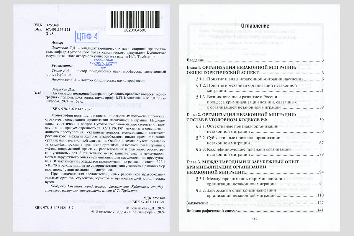 Зеленская, Дарья Дмитриевна. Организация незаконной миграции: уголовно-правовые вопросы. Москва, 2024
