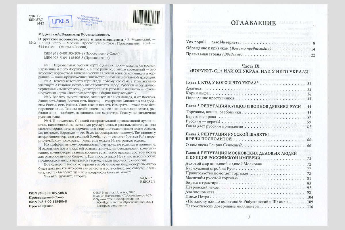 Мединский, Владимир Ростиславович. Мифы о России-3. О русском воровстве, душе и долголетии. Москва, 2023