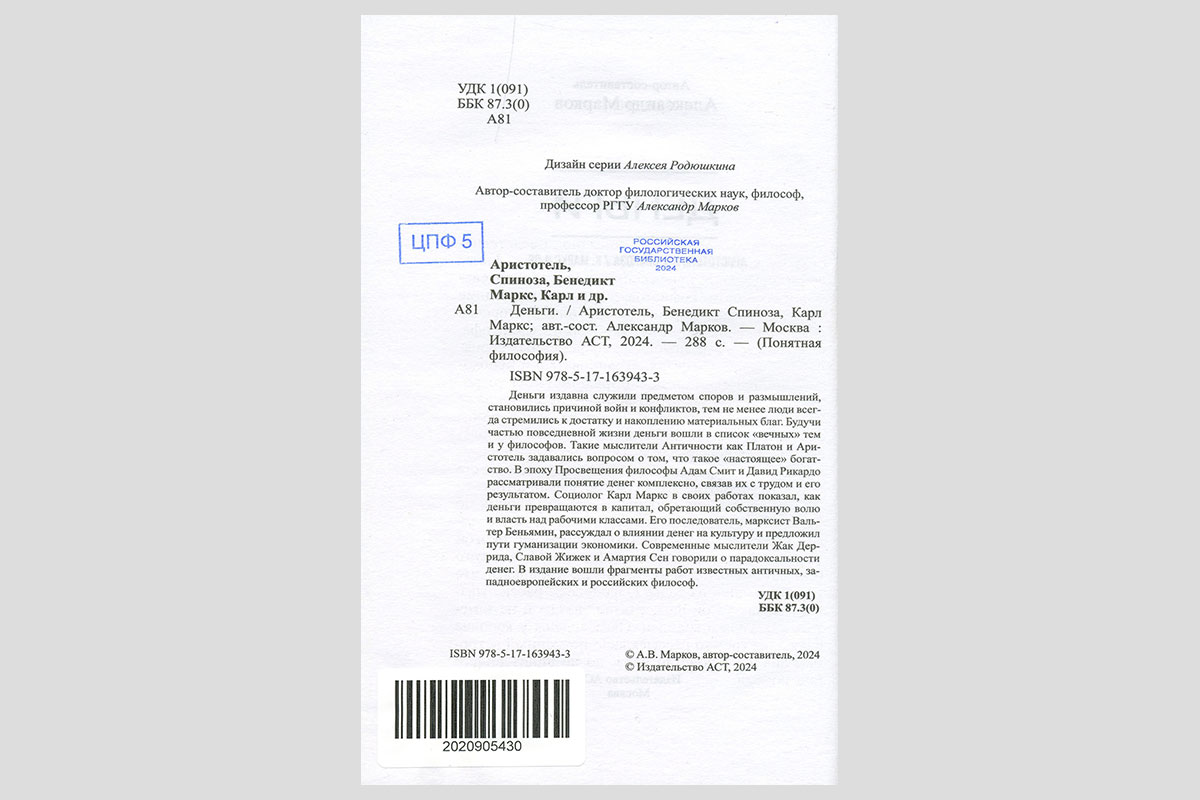 Деньги / Аристотель, Спиноза, Карл Маркс [и др.]. Москва, 2024