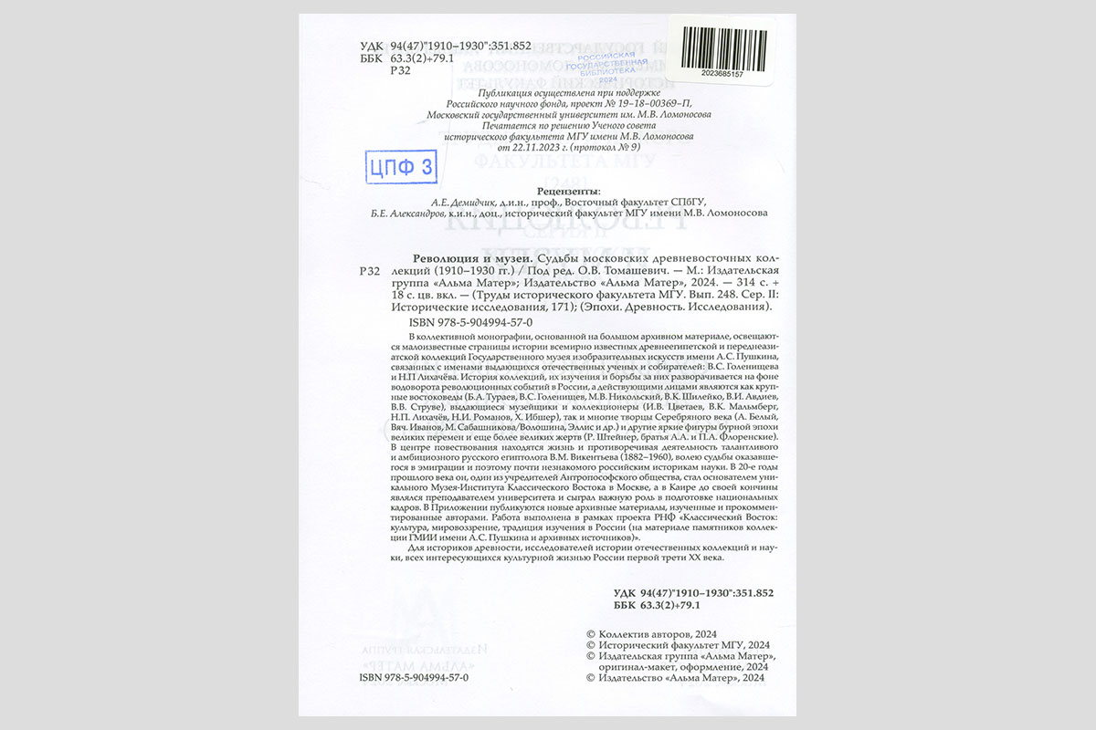 Революция и музеи: судьбы московских древневосточных коллекций (1910–1930 гг.). Москва, 2024