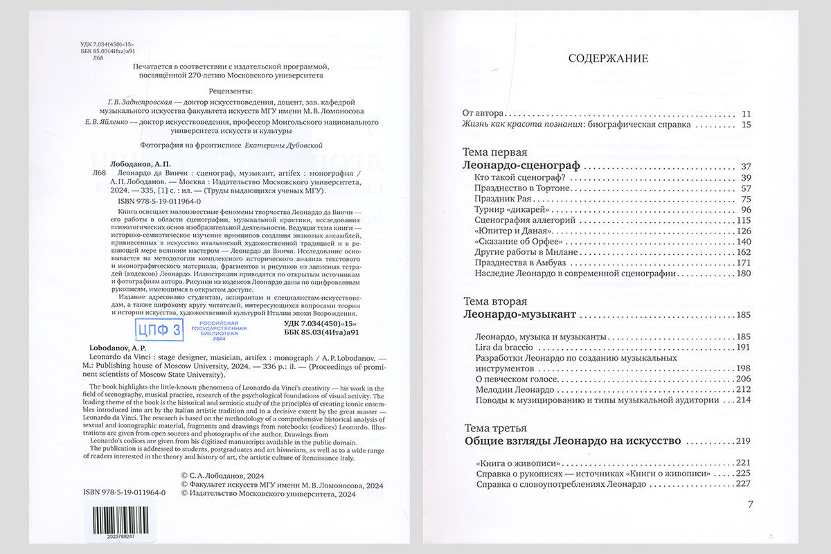 Лободанов, Александр Павлович. Леонардо да Винчи. Сценограф, музыкант, artifex. Москва, 2024
