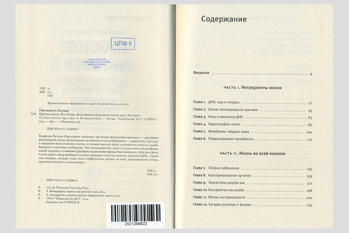 Партасарати, Рагувир. Простое начало: как четыре закона физики формируют живой мир. Москва, 2024
