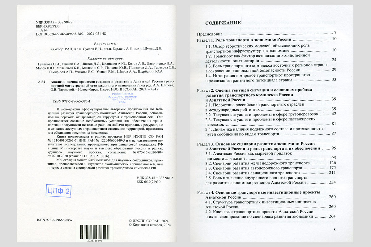 Анализ и оценка процессов создания и развития в Азиатской России транспортной магистральной сети различного назначения. Новосибирск, 2024