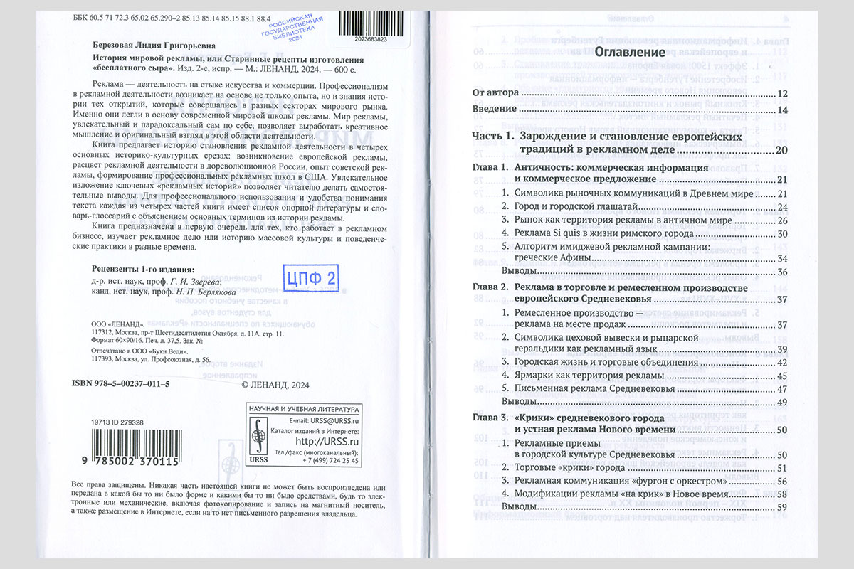 Березовая, Лидия Григорьевна. История мировой рекламы, или Старинные рецепты изготовления «бесплатного сыра». Москва, 2024