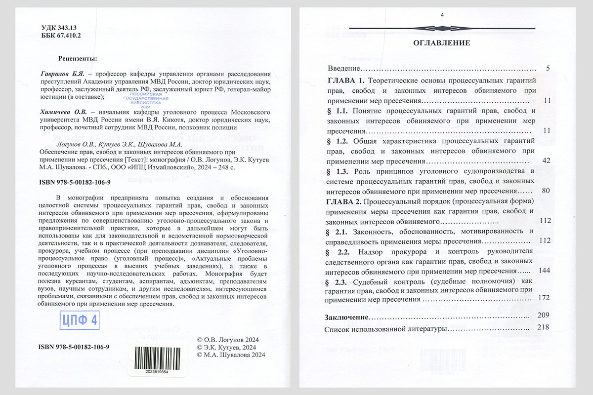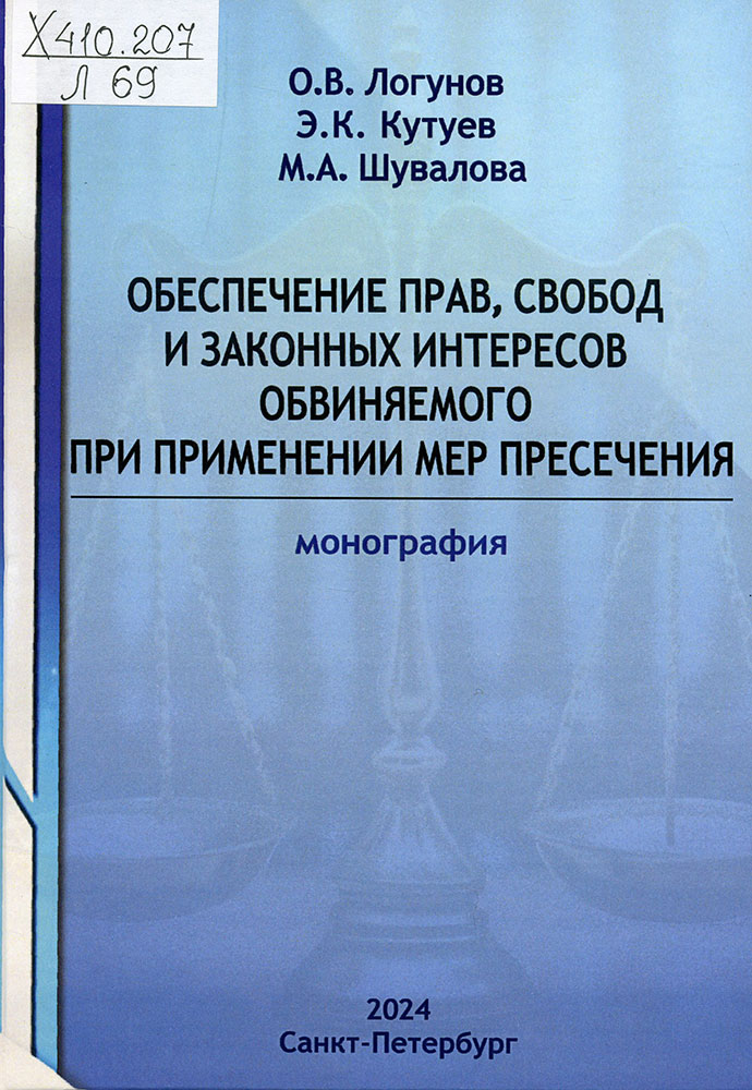 Логунов, Олег Владимирович. Обеспечение прав, свобод и законных интересов обвиняемого при применении мер пресечения.