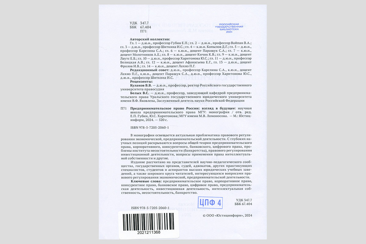 Предпринимательское право России: взгляд в будущее. Москва, 2024