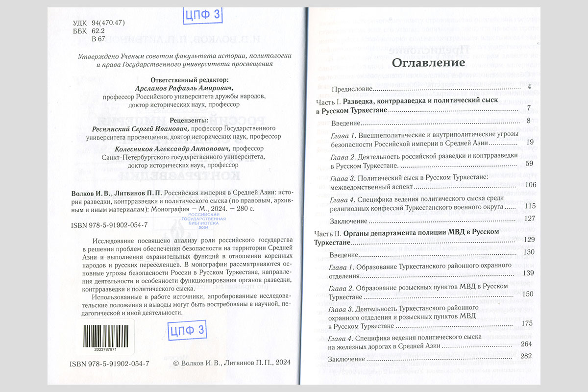 Волков, Иван Васильевич. Российская империя в Средней Азии: история разведки, контрразведки и политического сыска: (по правовым, архивным и иным материалам). Москва, 2024
