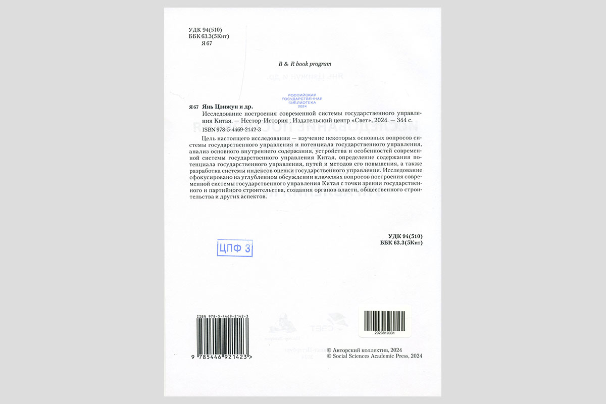 Янь Цзижун. Исследование построения современной системы государственного управления Китая.