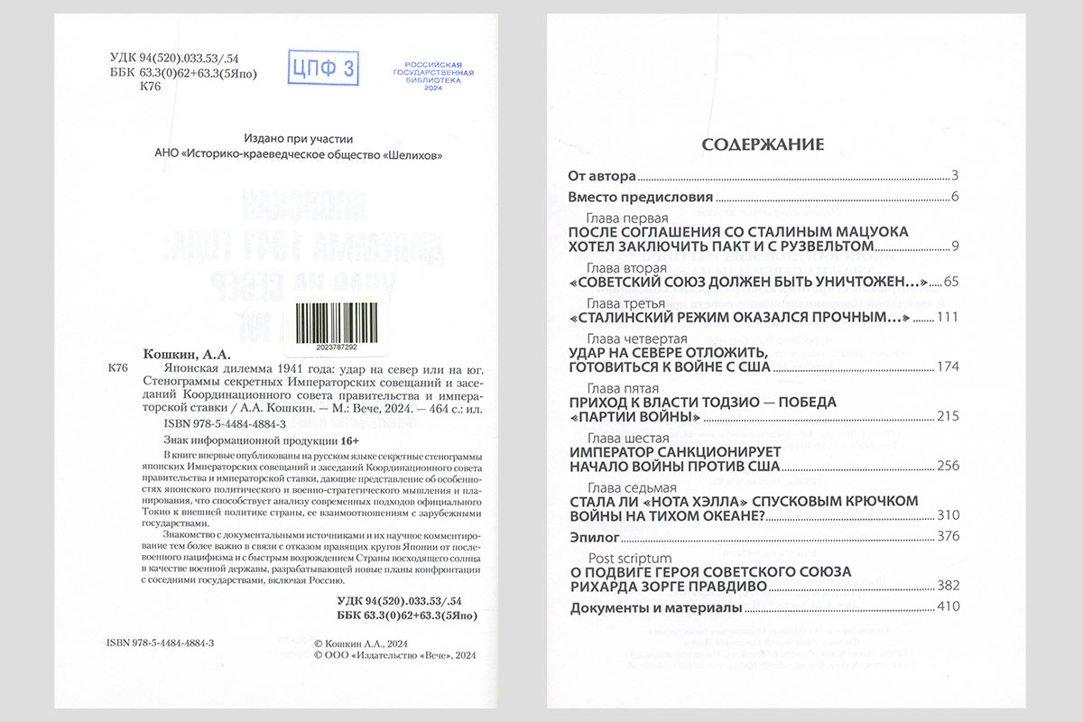 Кошкин, Анатолий Аркадьевич. Японская дилемма 1941 года: удар на север или на юг. Москва, 2024