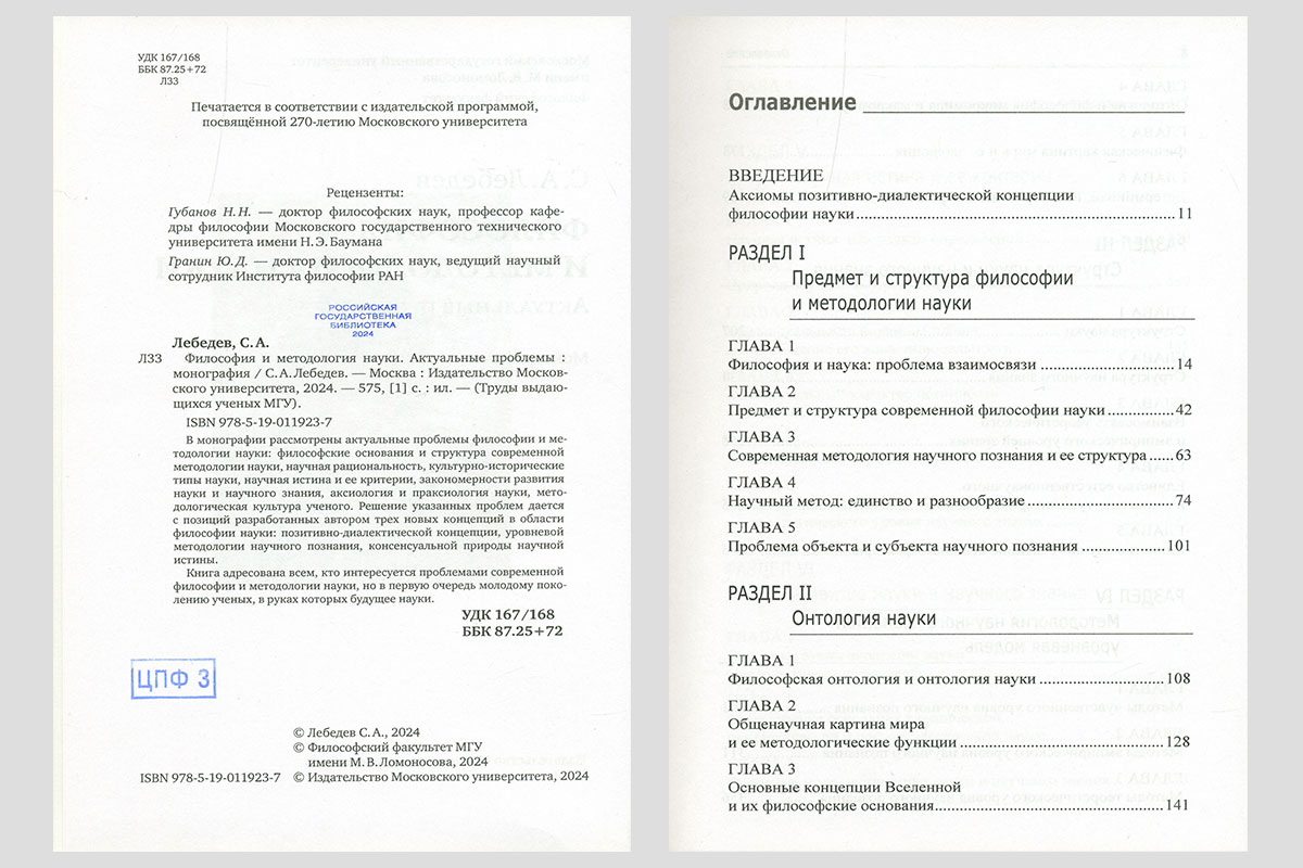 Лебедев, Сергей Александрович. Философия и методология науки. Актуальные проблемы. Москва, 2024