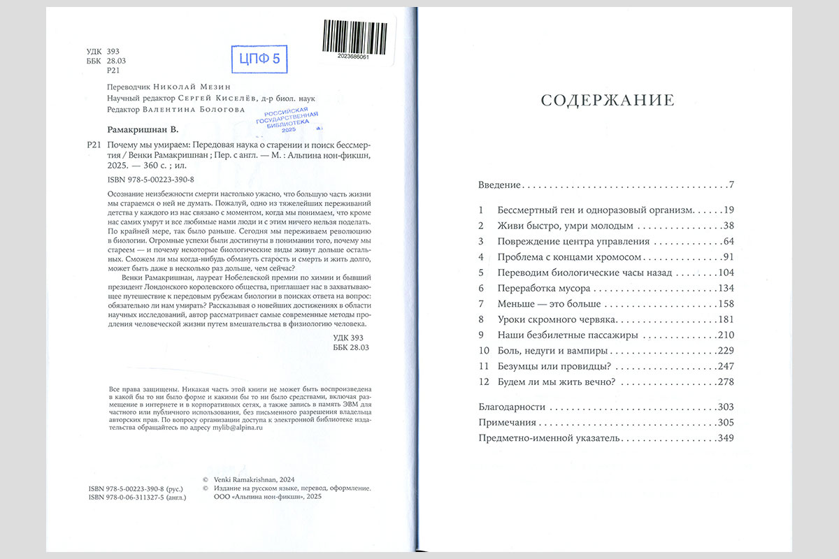 Рамакришнан, Венки. Почему мы умираем: передовая наука о старении и поиск бессмертия. Москва, 2025