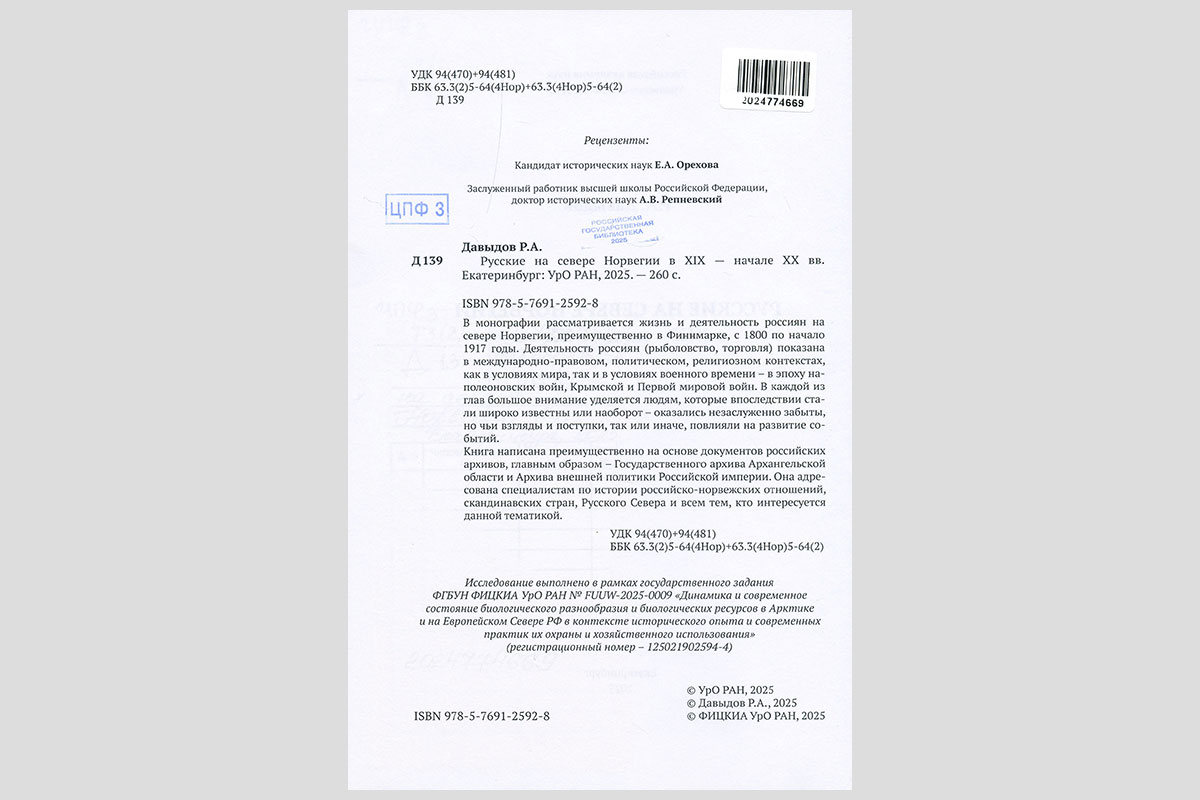 Давыдов, Руслан Александрович. Русские на севере Норвегии в XIX — начале XX в. Екатеринбург, 2025