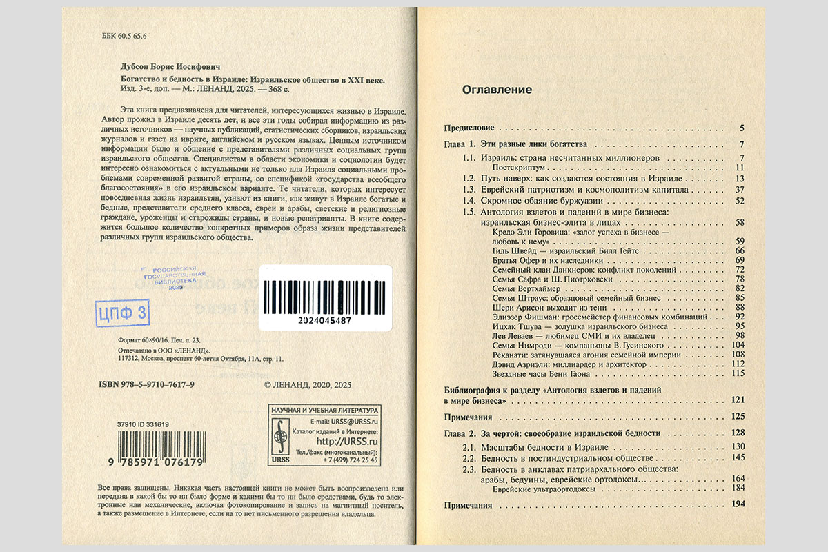 Дубсон, Борис Иосифович. Богатство и бедность в Израиле: израильское общество в XXI веке. Москва, 2025