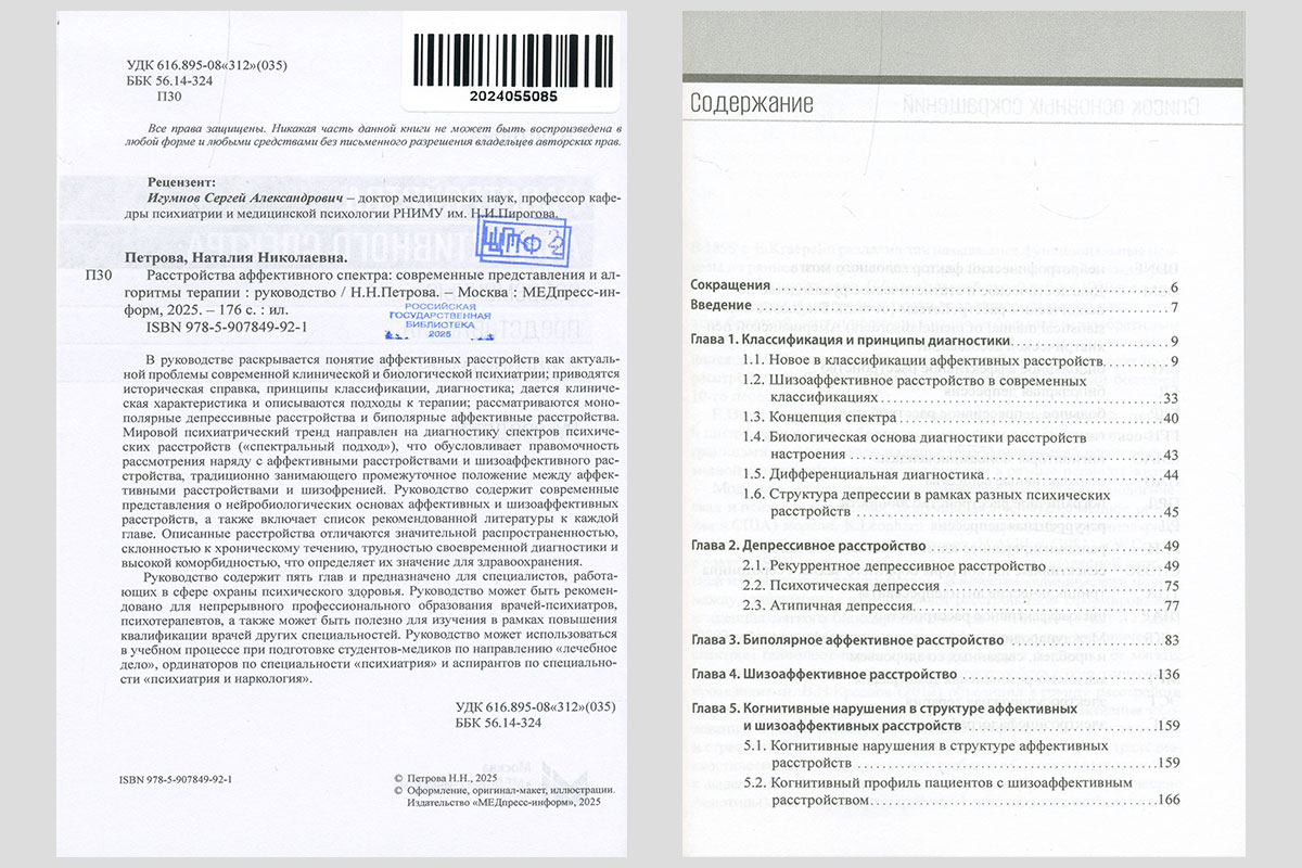 Петрова, Наталия Николаевна. Расстройства аффективного спектра: современные представления и алгоритмы терапии. Москва, 2025