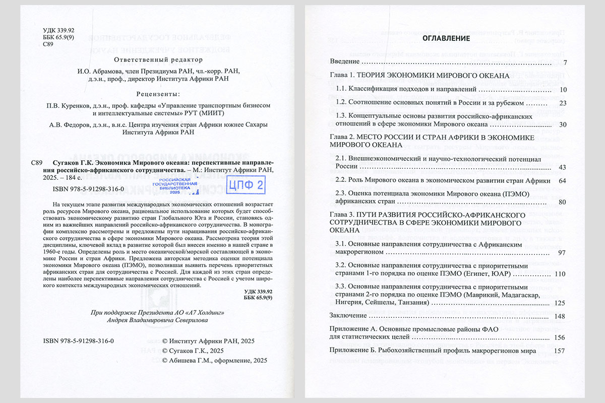 Сугаков, Глеб Константинович. Экономика Мирового океана: перспективные направления российско-африканского сотрудничества. Москва, 2025