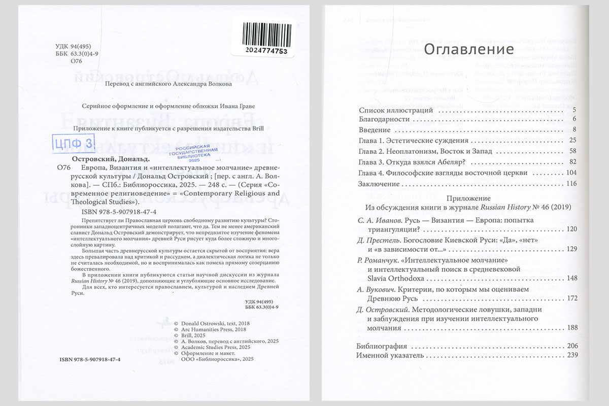 Островский, Дональд. Европа, Византия и «интеллектуальное молчание» древнерусской культуры. Санкт-Петербург, 2025