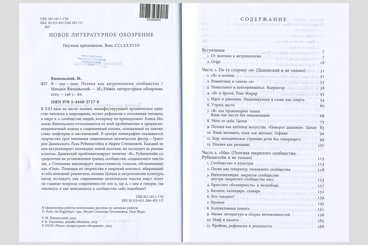Ямпольский, Михаил Бениаминович. Я — мы — они: поэзия как антропология сообщества. Москва, 2025