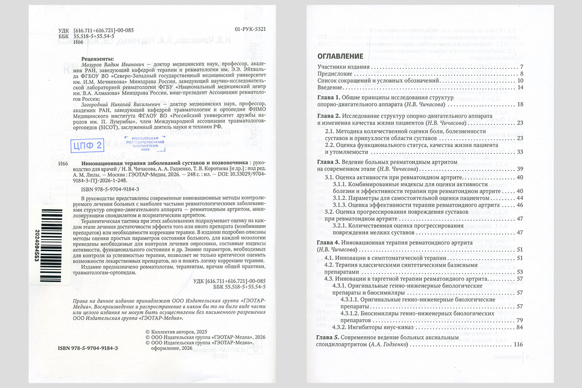 Чичасова, Наталья Владимировна. Инновационная терапия заболеваний суставов и позвоночника: руководство для врачей. Москва, 2026