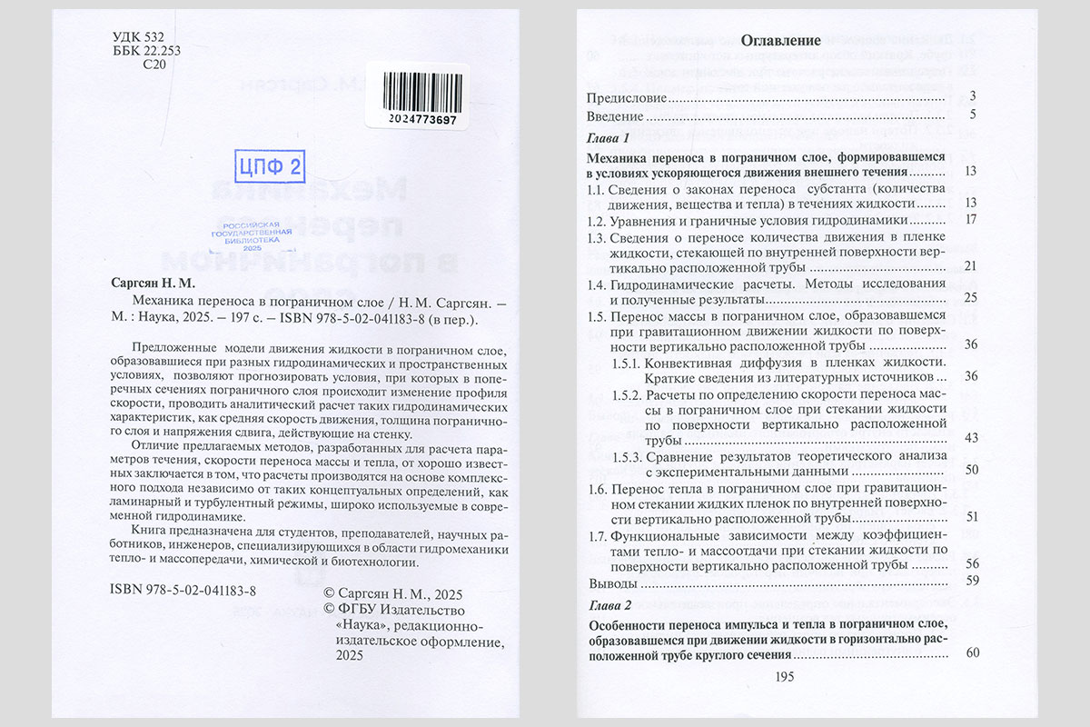 Саргсян, Норик Михайлович. Механика переноса в пограничном слое. Москва, 2025