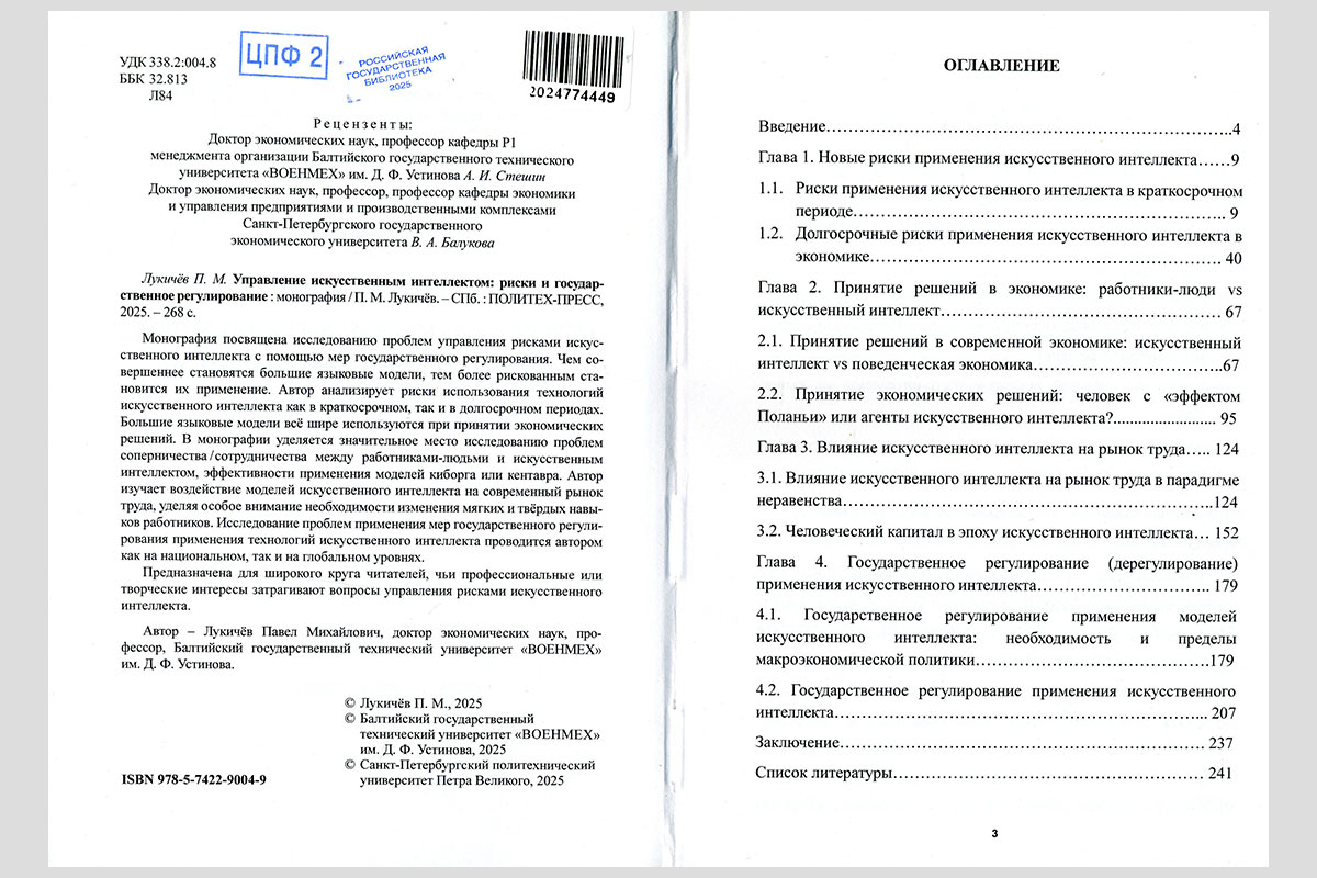 Лукичев, Павел Михайлович. Управление искусственным интеллектом: риски и государственное регулирование. Санкт-Петербург, 2025