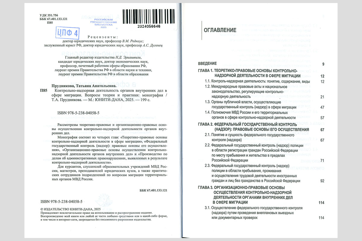 Прудникова, Татьяна Анатольевна. Контрольно-надзорная деятельность органов внутренних дел в сфере миграции. Москва, 2025