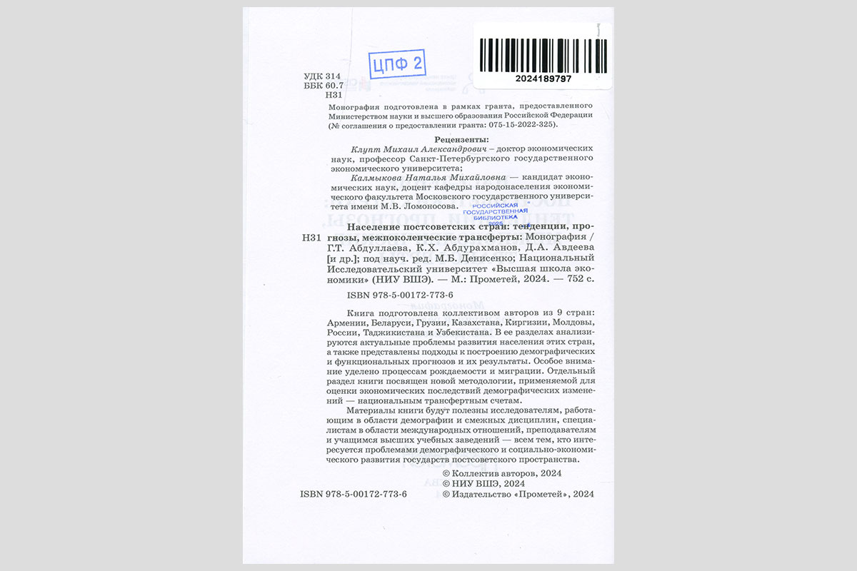 Население постсоветских стран: тенденции, прогнозы, межпоколенческие трансферты. Москва, 2024