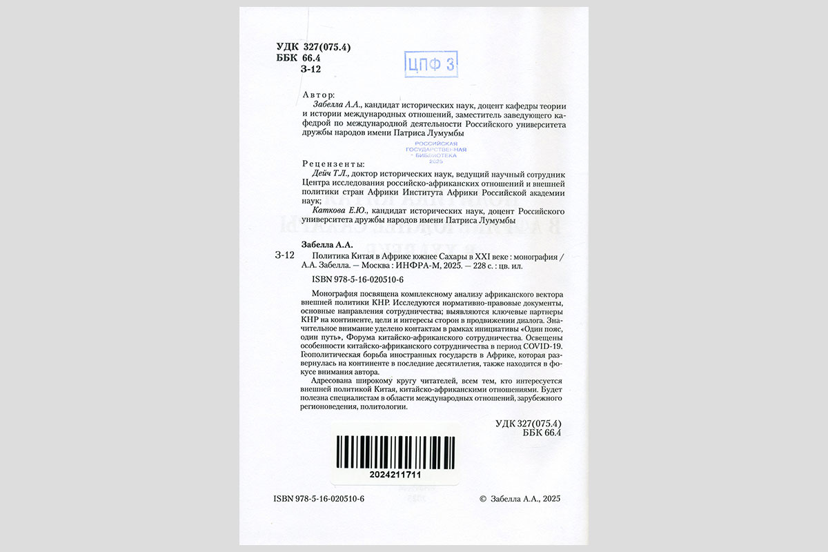 Забелла, Анастасия Александровна. Политика Китая в Африке южнее Сахары в XXI веке. Москва, 2025